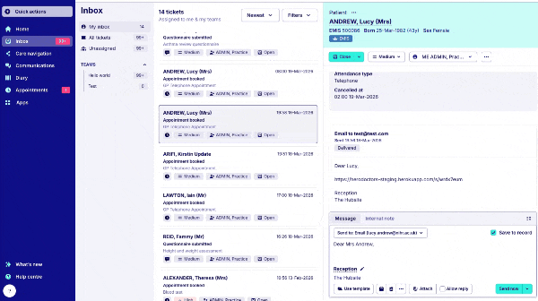 You may not see this directly, but a number of improvements have been made to how the inbox handles work created by messages. When you send a patient a message containing a booking link, a form, or a reply prompt, the inbox now creates and tracks each of those as separate items — meaning nothing gets lost, and the right task lands in the right inbox view at the right time.