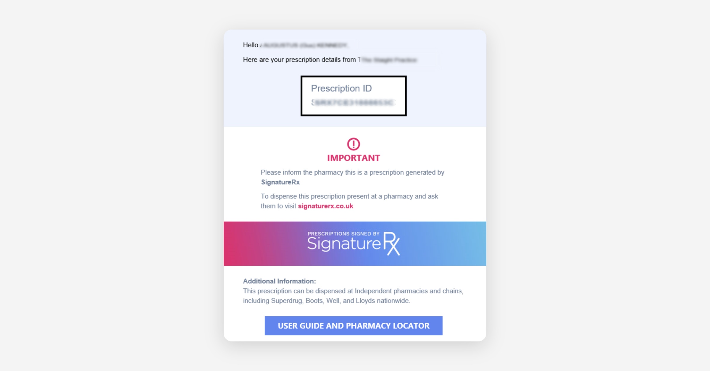 Once a prescription has been issued through Hero to Signature Rx, a message will be sent to the patient by SMS and Email with details of the script.