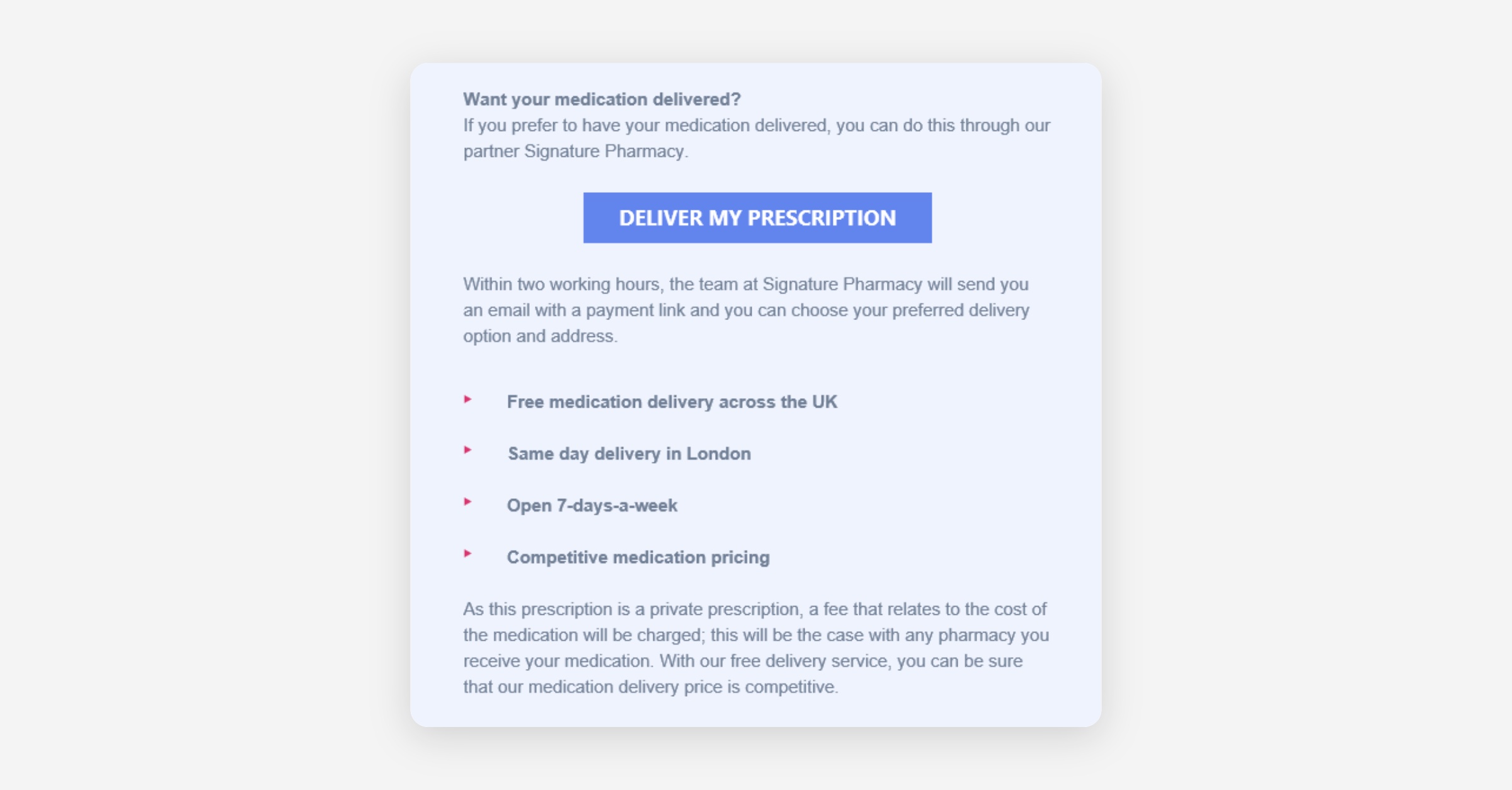 Patients can opt to have their medication delivered, by selecting the 'Deliver my prescription' option at the foot of the email: