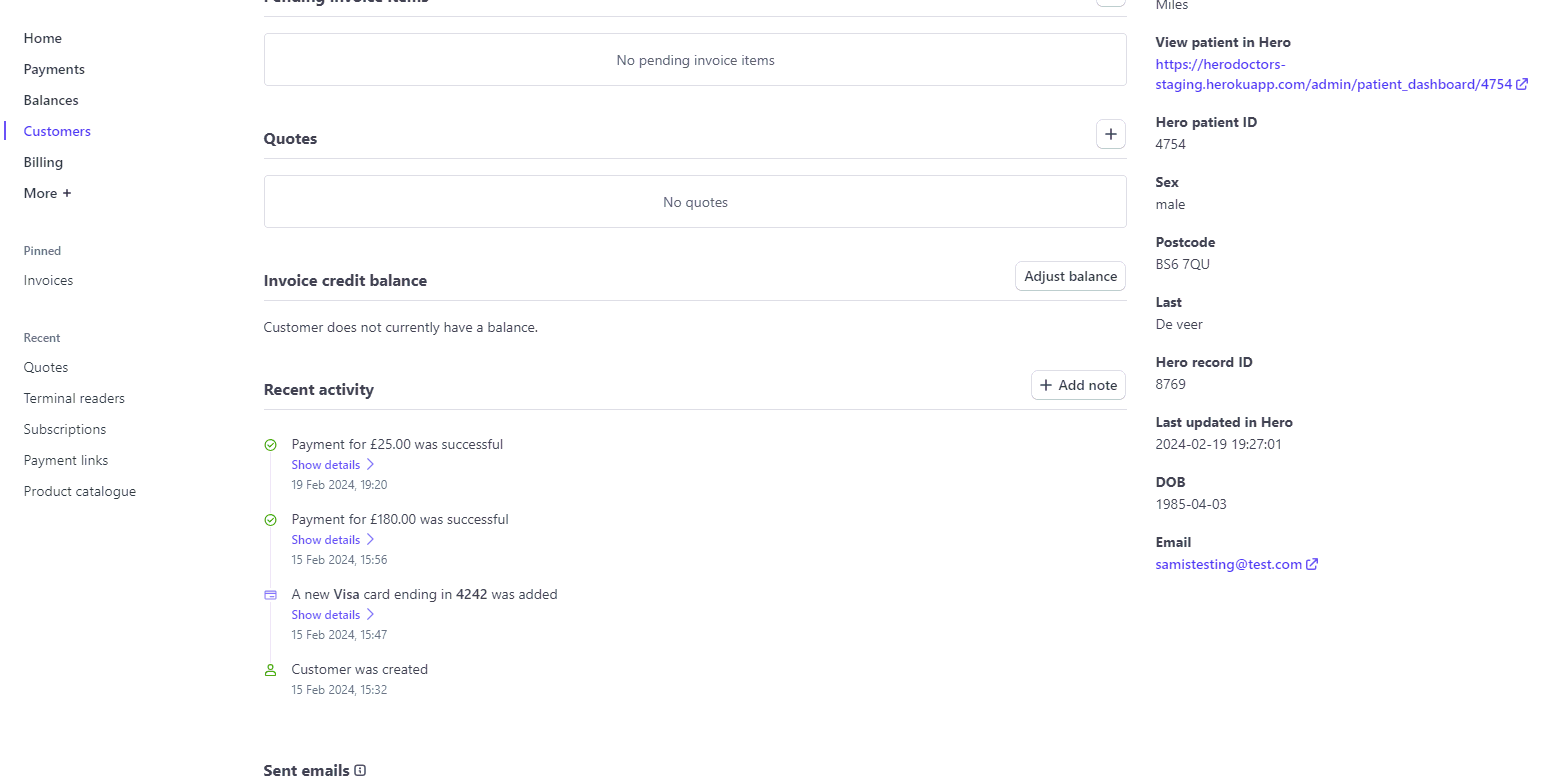 Once you've added a credit or debit, this will automatically be applied to the next invoice issued to the Stripe customer through Hero: