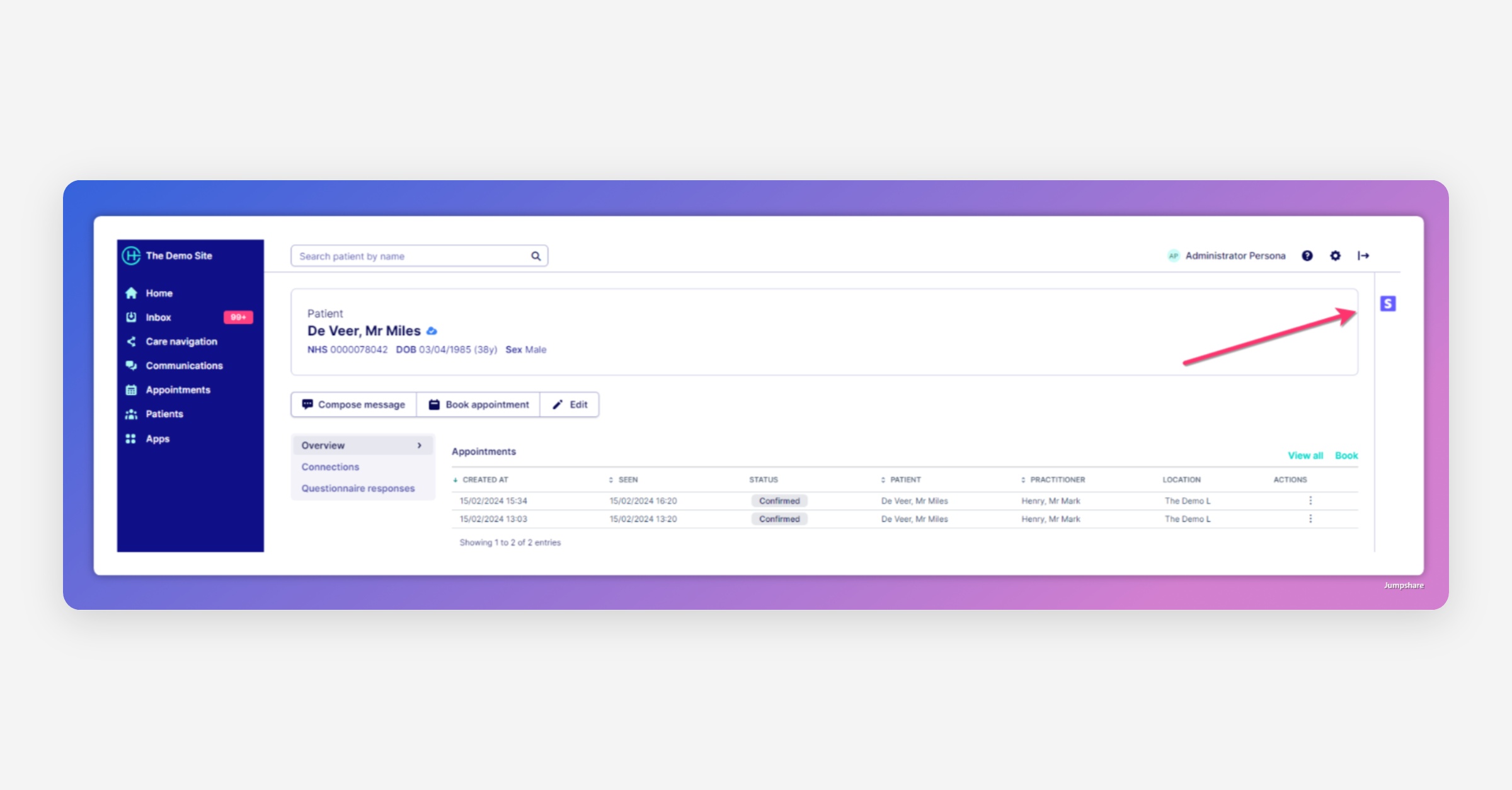 The Stripe integration is accessed via the Hero App toolbar. The App toolbar can be accessed whenever a patient is 'in context' on the selected page. Specifically, you can raise an invoice: