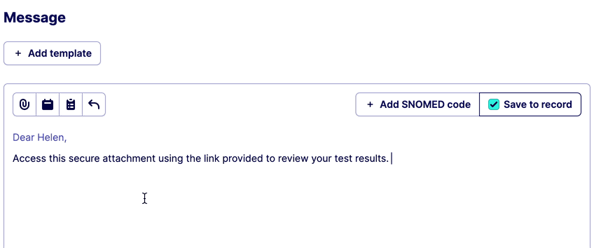Once you have access to the message builder with your patient selected, to attach a document you need to: